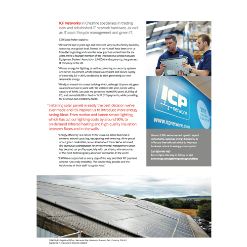 ICP Networks will star in a nationwide EON campaign after being recognised for creating the ‘Greenest IT HQ’ in Britain.