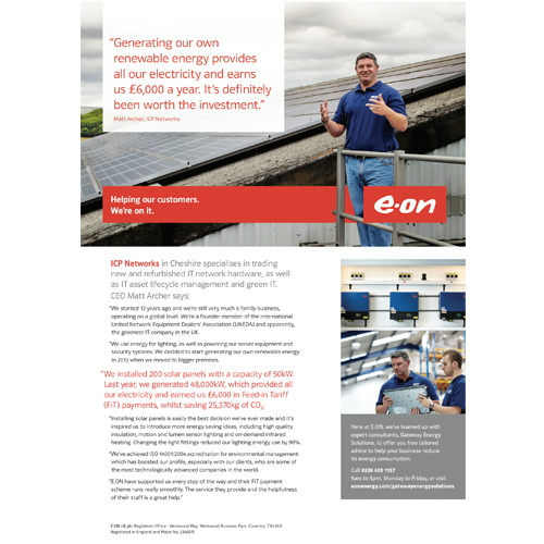 EON will use ICP Networks in a national campaign which it is hoped will inspired business to try to improve their energy efficiency.
